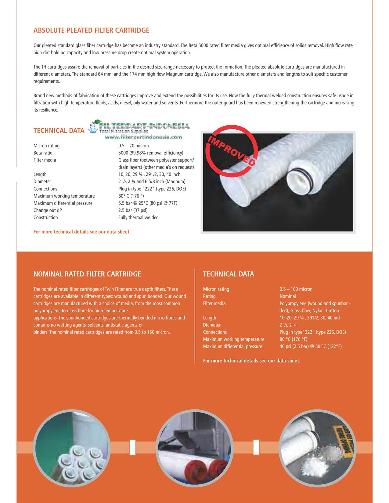 Lebih lengkapnya, silahkan kunjungi halaman [Filter Cartridge Micron Absolute dan Nominal].